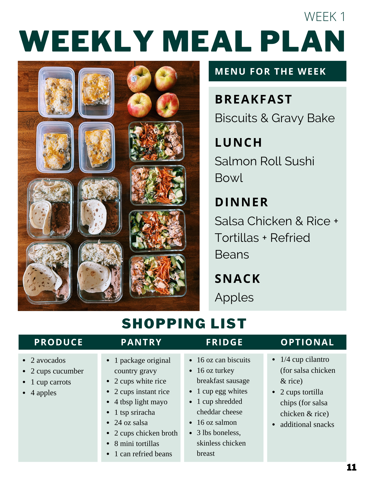 If you've been struggling with efficiency in preparing meals for the week or want the tools to feel empowered in the kitchen, this 60+ page ebook will be a big help. This is a great guide for busy people or anyone who wants a successful meal prep journey.